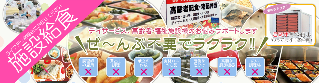 | 許可・登録・保有資格 | 訪問介護事業所番号: 4570107377 通所介護事業所番号: 4590101400 飲食店営業: 宮保衛指令第1号581 全省庁統一資格: 0000187184 宮崎市生活支援配食事業: 宮地包第 240号 |