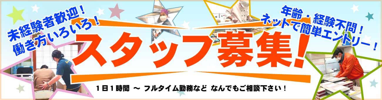 | 事業案内 | 配食事業、訪問介護事業、通所介護事業、家事代行等の保健外サービス 等 |